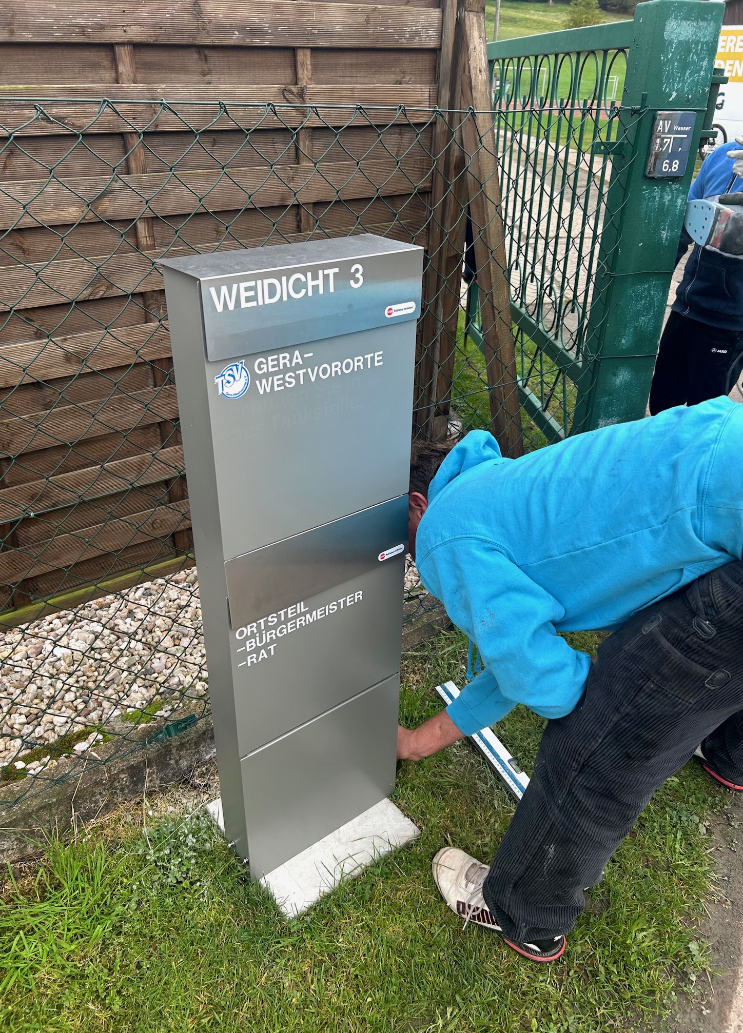 Last but not least wurde auch der neue Briefkasten auf das beim letzten Arbeitseinsatz vorbereitete Fundament aufgesetzt.