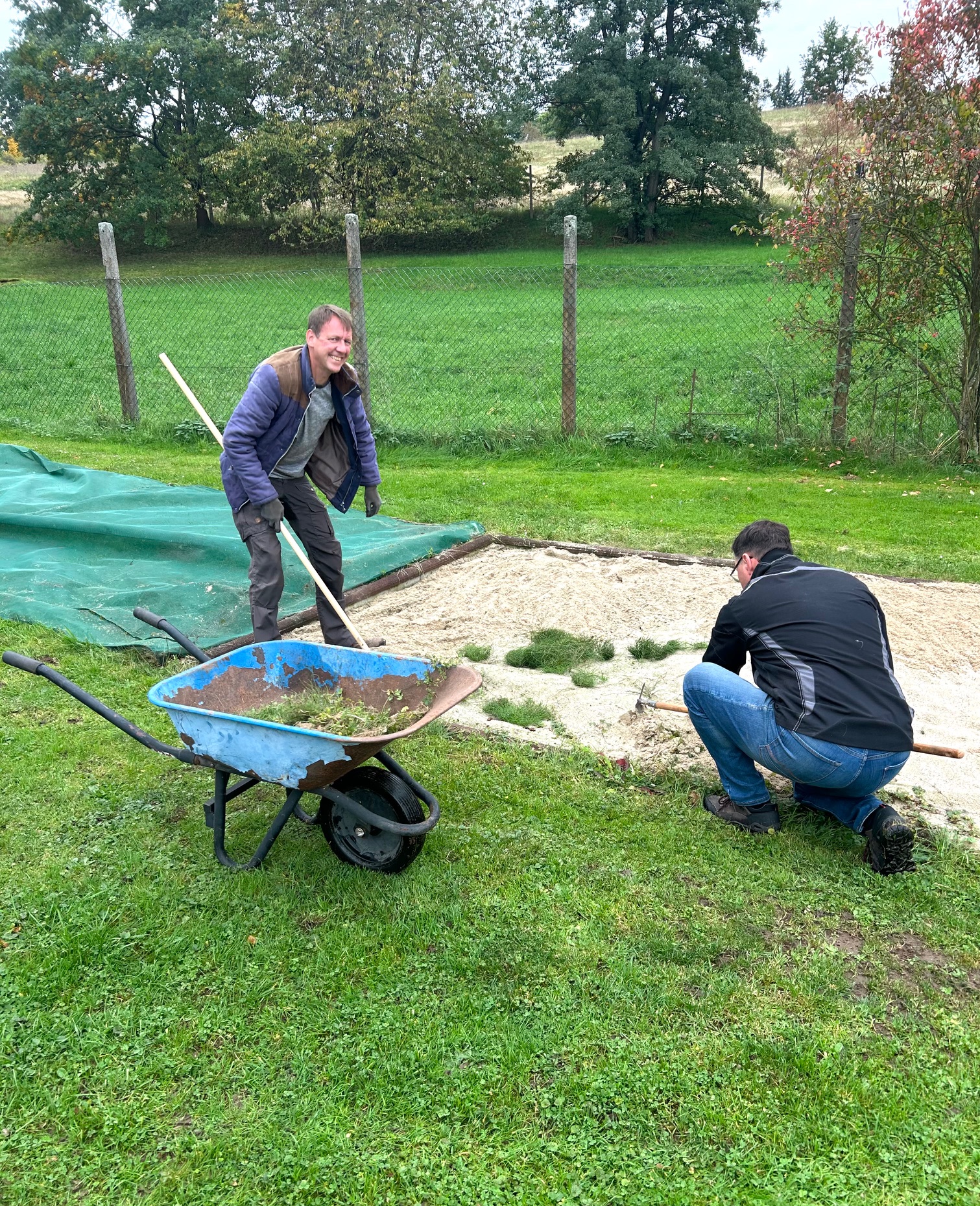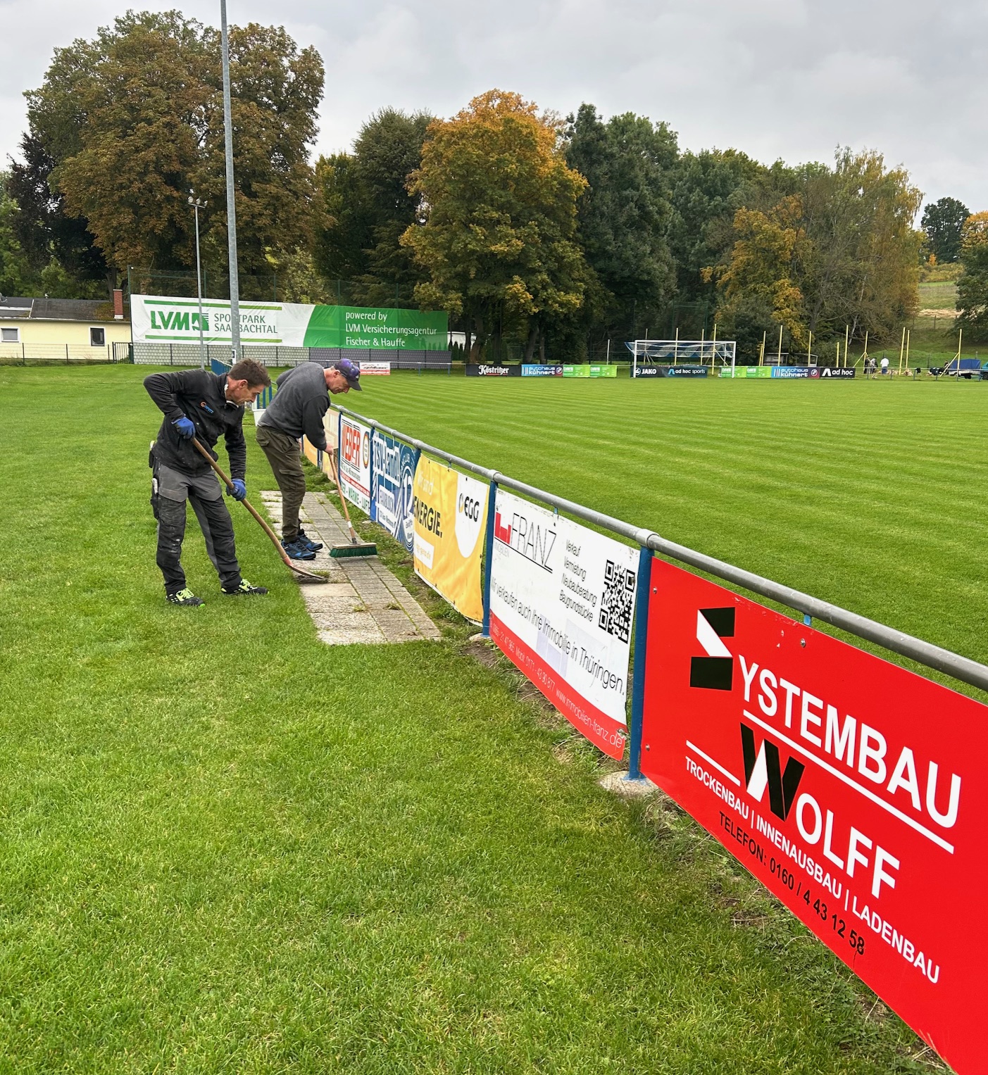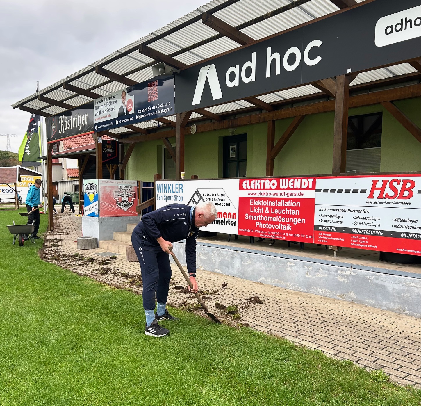 (13.10.2025) Am vergangenen Samstag fanden sich 25 Vereinsmitglieder zu einem weiteren Arbeitseinsatz auf dem Sportgelände in Scheubengrobsdorf ein und werkelten den ganzen Vormittag fleißig umher. Unter Anleitung unseres Vorstandsmitgliedes Ralf Kinne, der bereits im Vorfeld alles perfekt organisierte, wurde viel geschafft.