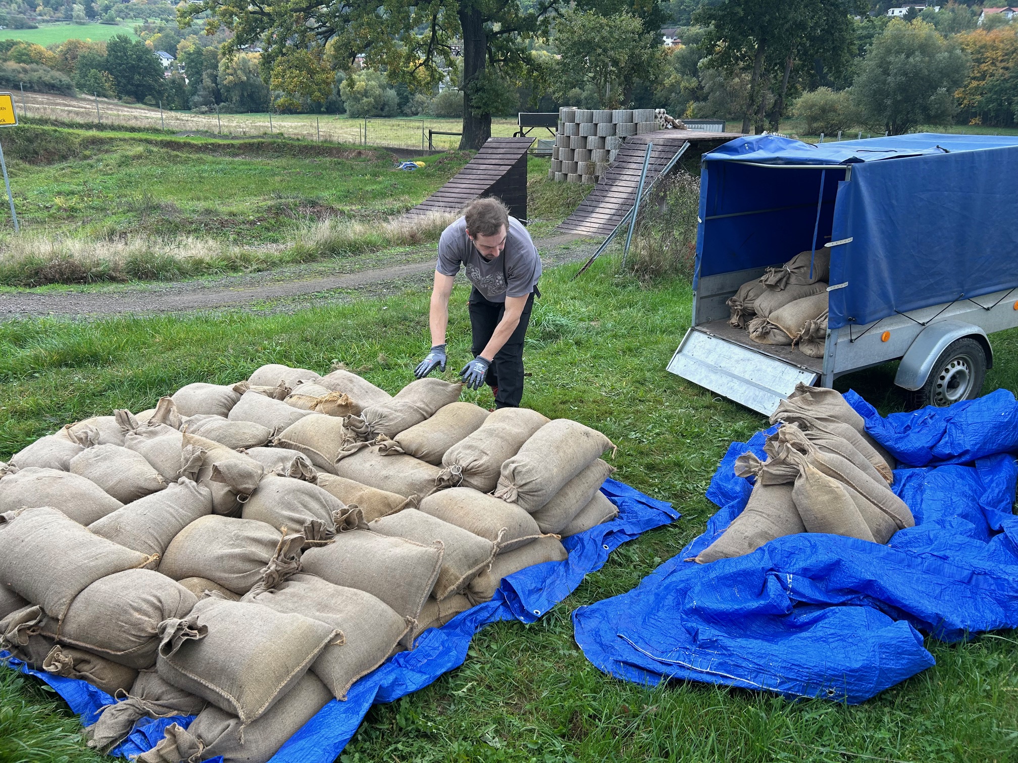 Marcel Ziegler, Vorstandsmitglied und Verantwortlicher für die Oak Trails, transportierte die gefüllten Sandsäcke mit einem kleinen Anhänger vom LVM Sportpark in die Bike-Park, wo diese mittlerweile zur Stabilisierung verschiedener Trails dienen.
