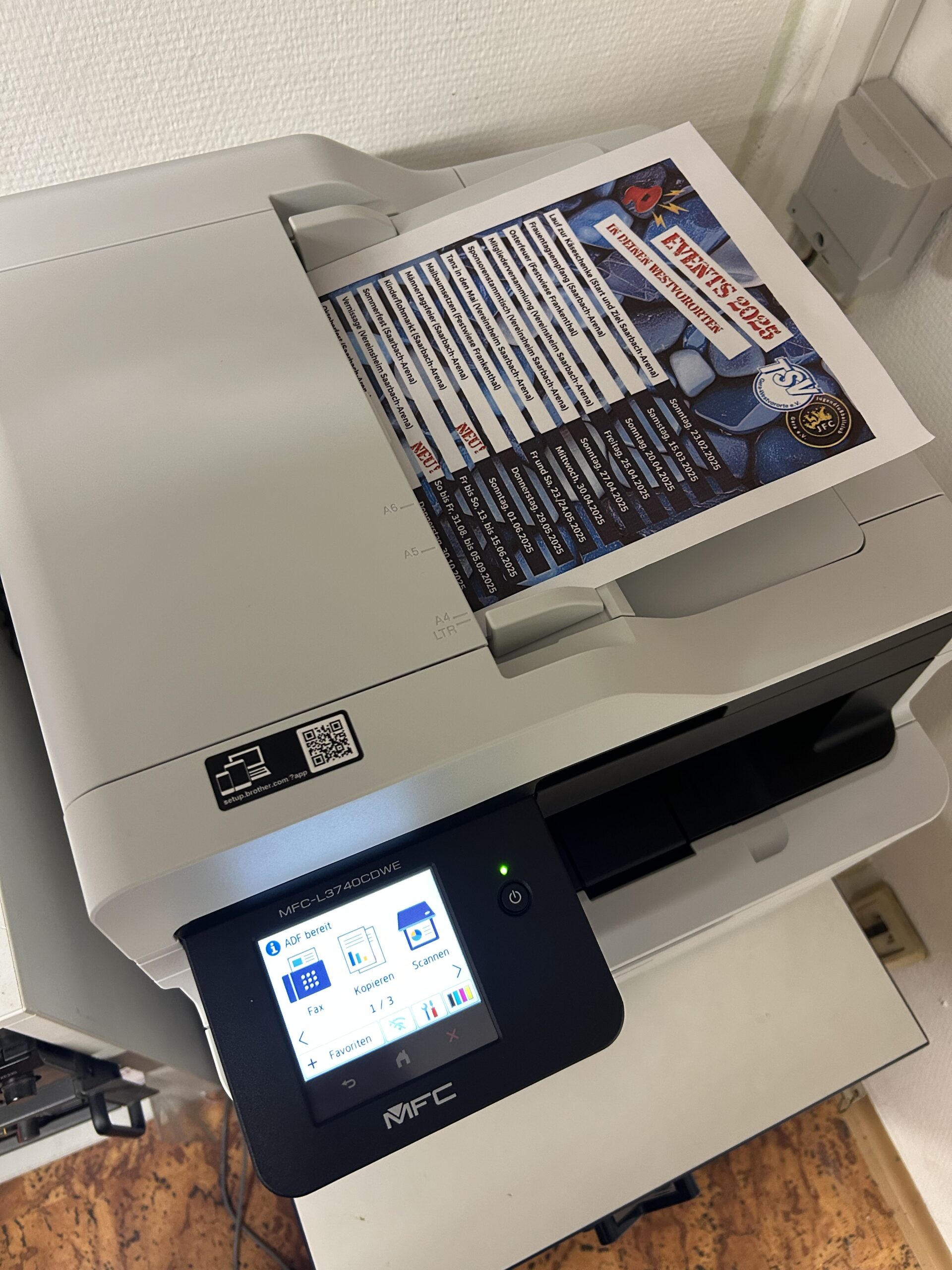 Per heute wurde sie erlöst und ersetzt und darf in den wohlverdienten Ruhestand gehen. Drucken, Scannen und Kopieren ist ab sofort in einer ganz neuen Qualität, in Farbe, klar und deutlich, möglich.