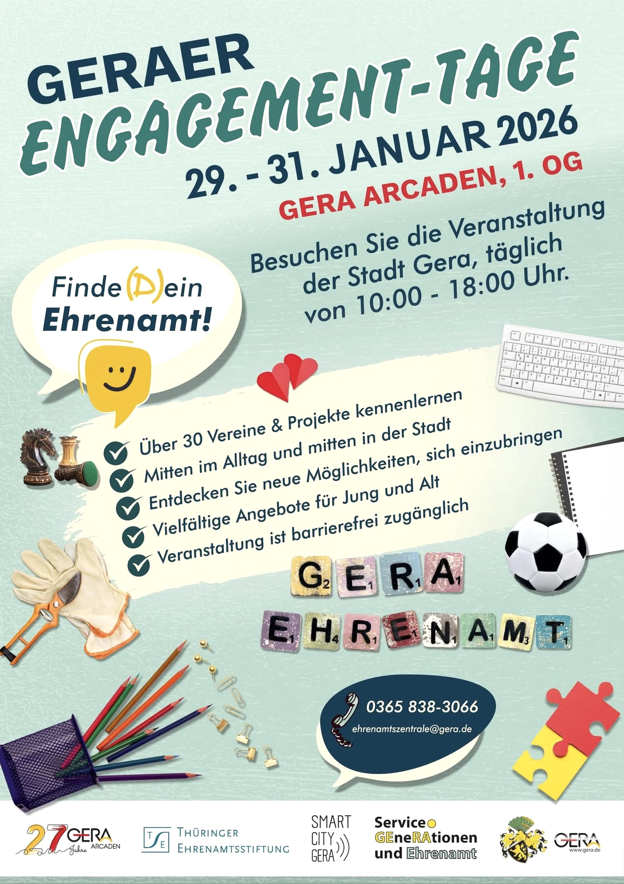 Erstmals finden vom 29.01. bis 31.01.2026 die Geraer Engagement-Tage in den Gera Arcaden statt.