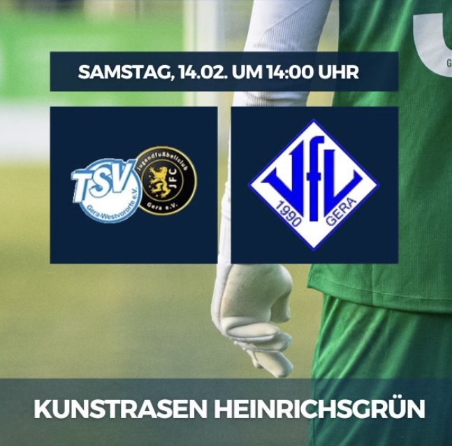 Anstoß zum Test gegen den VfL 1990 Gera ist am Samstag um 14:00 Uhr. Der Eintritt kostet 2,- Euro. Für einen kleinen Imbiss ist gesorgt. Schon heute begrüßen wir alle Zuschauer und das Schiedsrichterkollektiv um Referee Dominik Gretscher auf das Herzlichste in der Heimstätte unseres Kooperationspartners JFC Gera – dem Kunstrasenplatz in Heinrichsgrün.