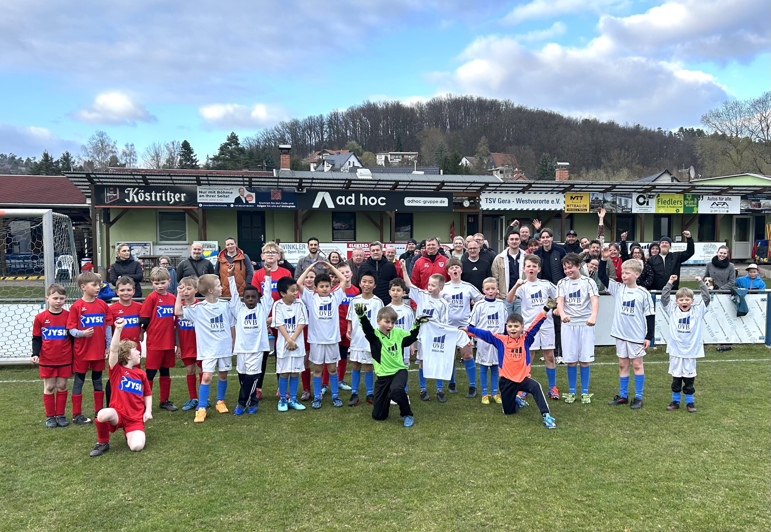 An dieser Stelle auch nochmals ein herzliches Dankeschön für die großzügige Unterstützung durch Vereinsmitglied Gerald Löwe (auf unserem Mannschaftsfoto ganz links), Generalagent der OVB Generalvertretung Gera, die von unseren Kindern nicht nur auf den Trikots präsentiert wurde, sondern unseren Verein schon seit vielen Jahren äußerst großzügig unterstützt.