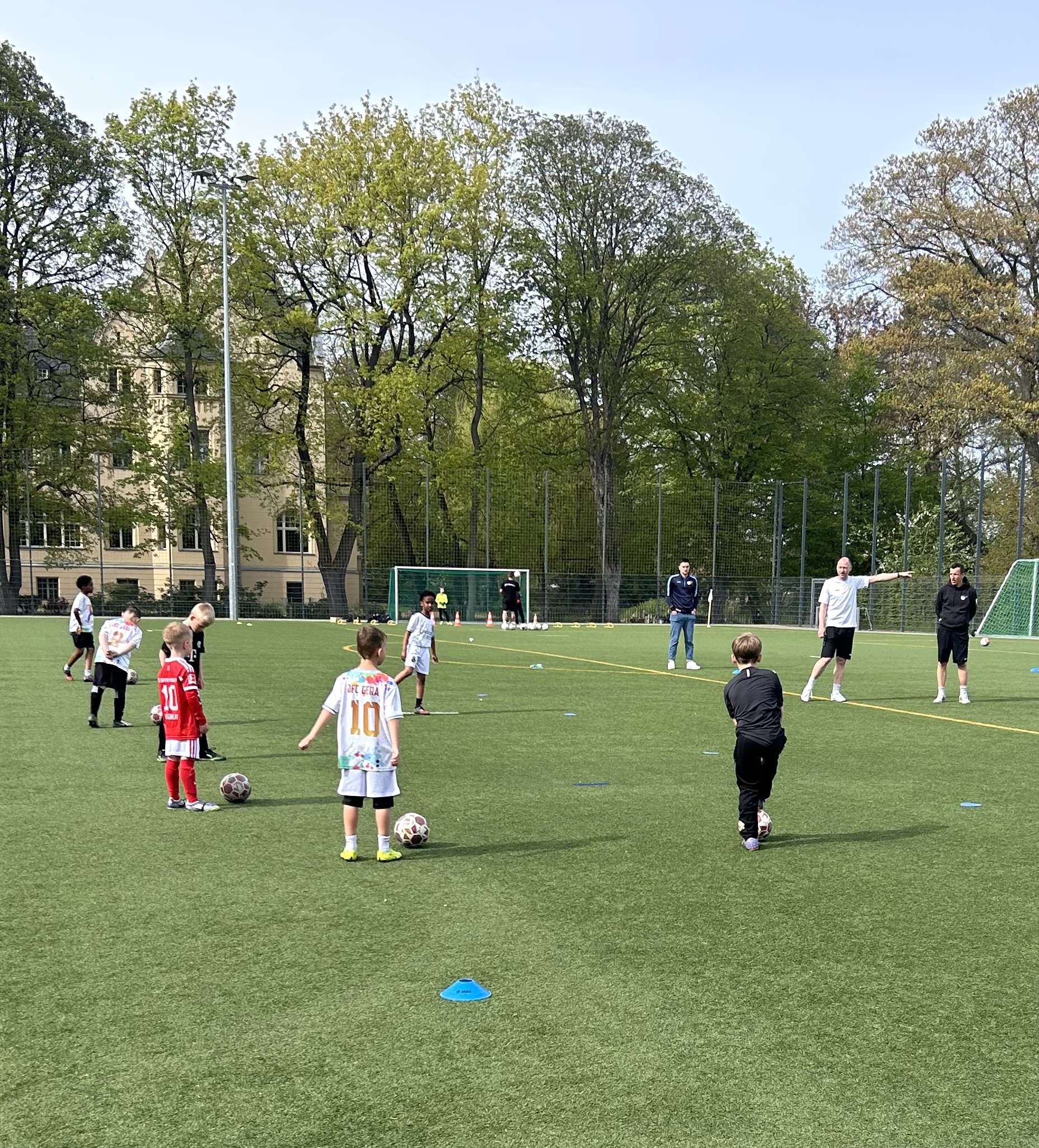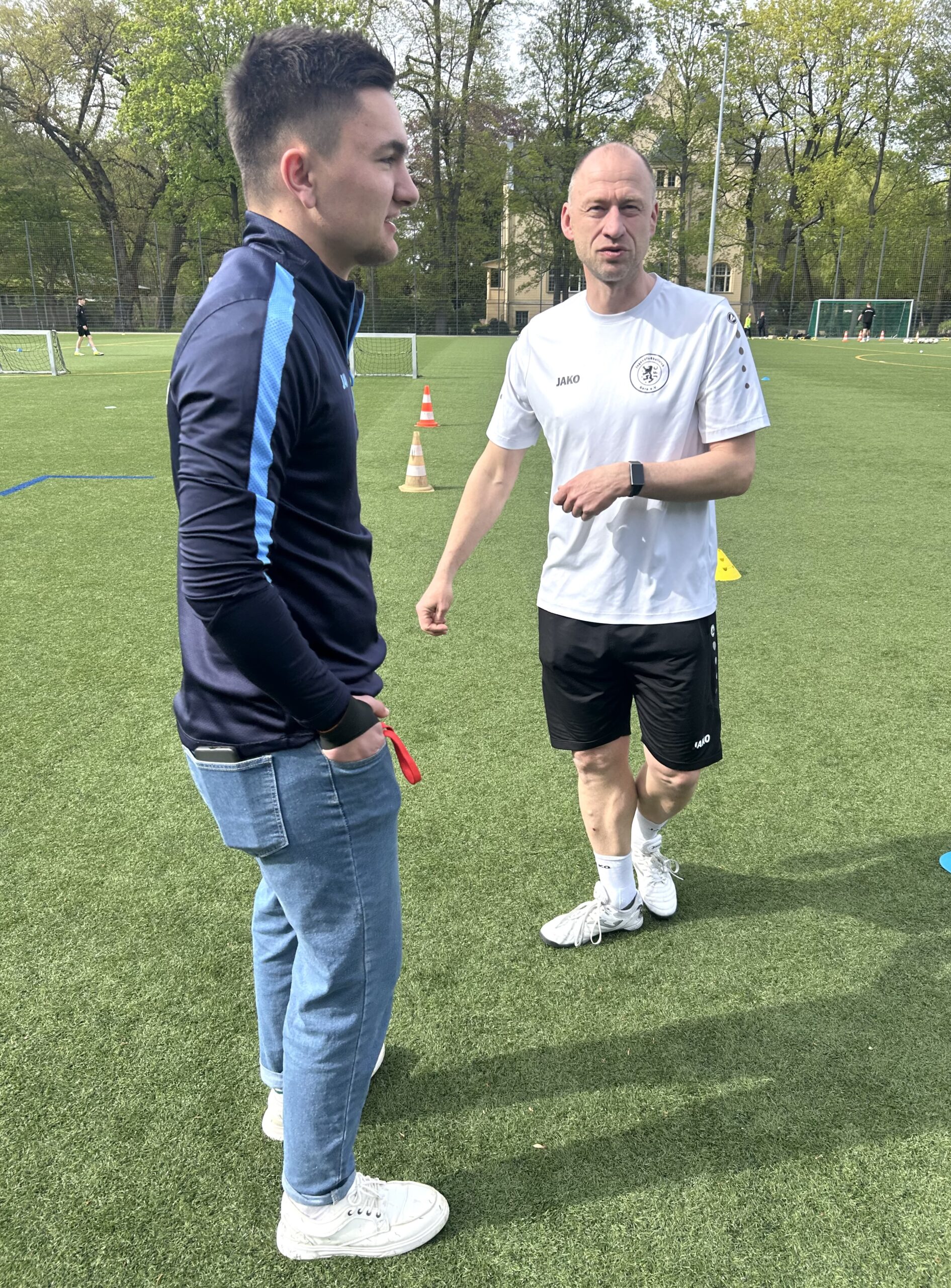 Bevor unsere F-Junioren am morgigen Mittwoch im Freundschaftsspiel im LVM Sportpark Saarbachtal die Kids vom Lusaner SC erwarten, durfte Gustaf Keßler, der junge Trainer unserer TSV-F-Junioren, am Montagnachmittag auf dem Kunstrasenplatz in Gera-Heinrichsgrün mal bei den erfahrenen Übungsleitern des JFC reinschnuppern. Hospitation – das „Zauberwort“.