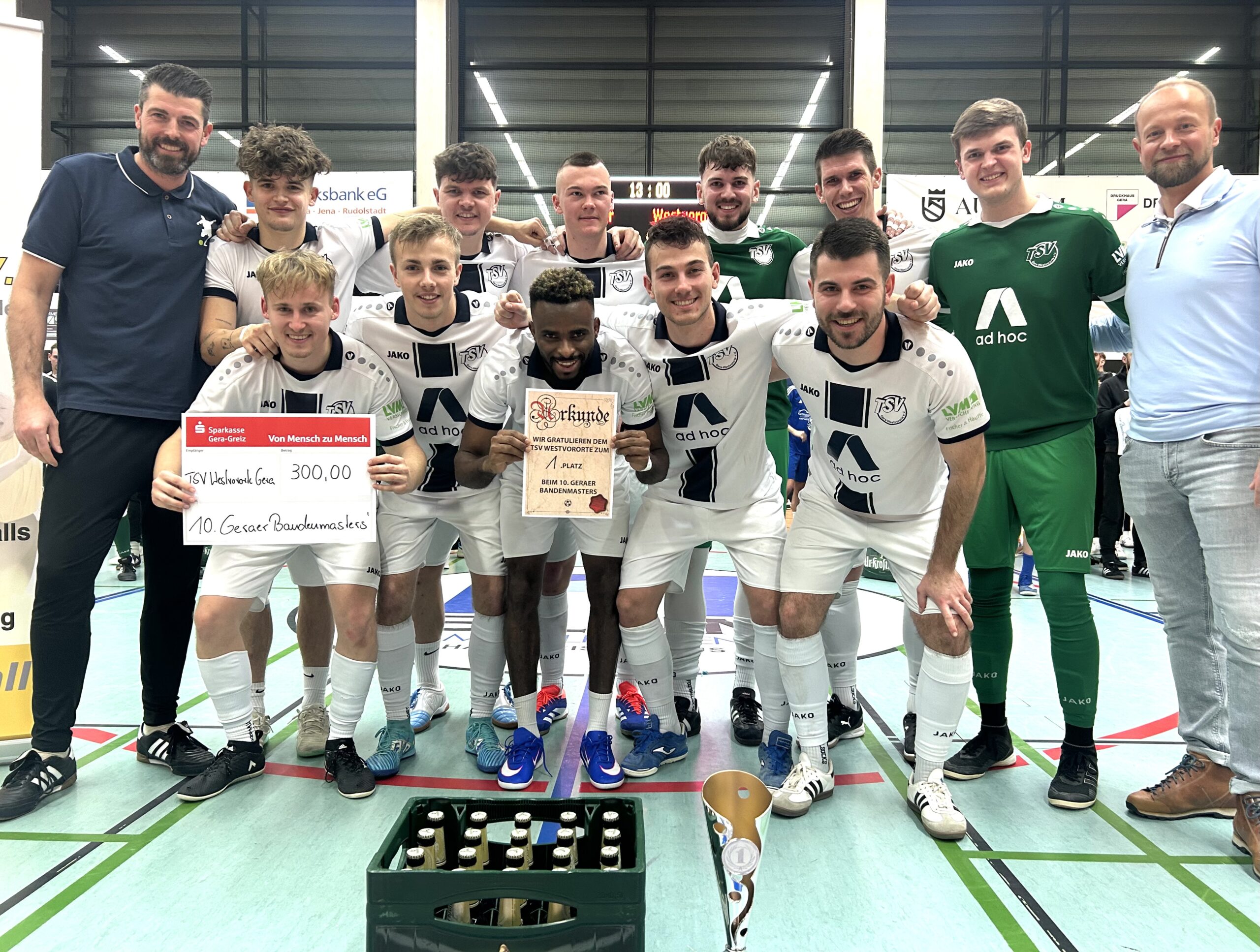 Als am Samstagabend um 22:35 Uhr das letzte Spiel des abermals überragend organisierten BandenMaster abgepfiffen wurde, kannte der Jubel bei den Spielern und Betreuern des TSV Gera- Westvororte und dem mitgereisten Weiß-Blauen Anhang auf der Tribüne keine Grenzen mehr.
