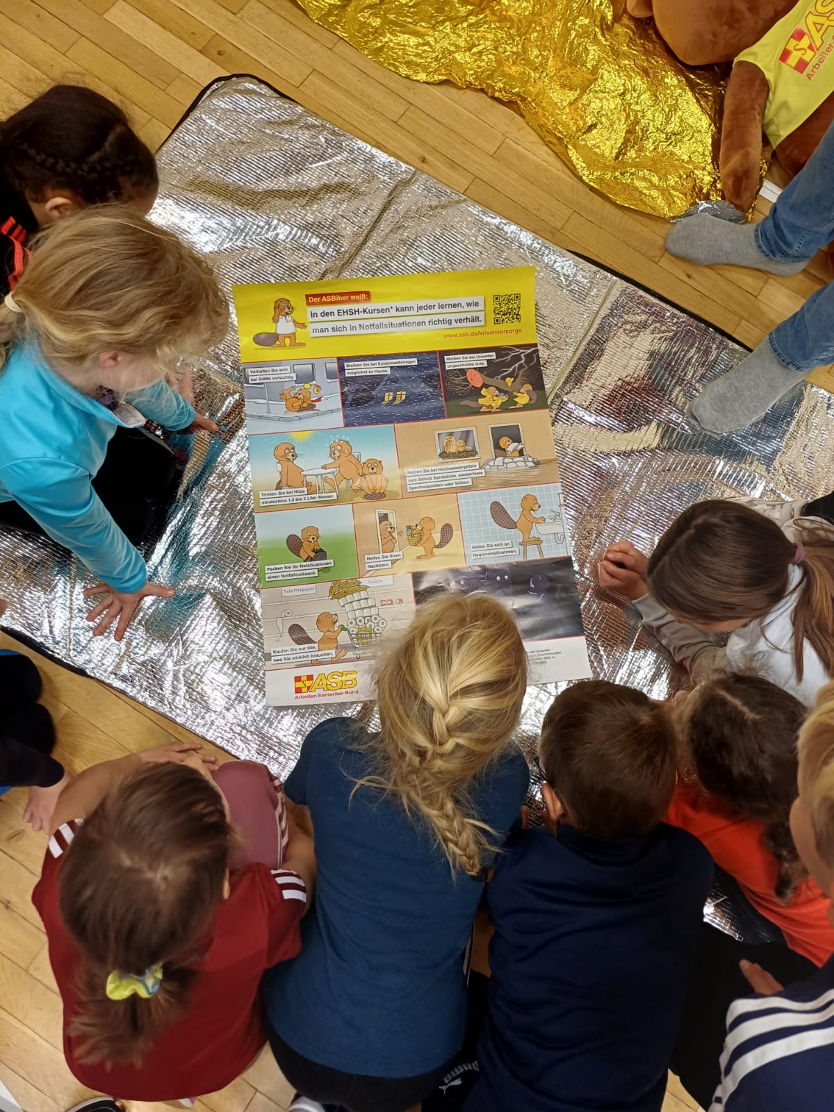 Dieses Maskottchen bringt den Kids auf kindgerechte und spielerische Weise schwierige Themen rund um Erste Hilfe und Selbstschutz näher. Frank Fleischer und der ASBiber zeigten den Kindern altersgerecht, verständlich und zum Mitmachen, wie man sich in Notsituationen richtig verhält.