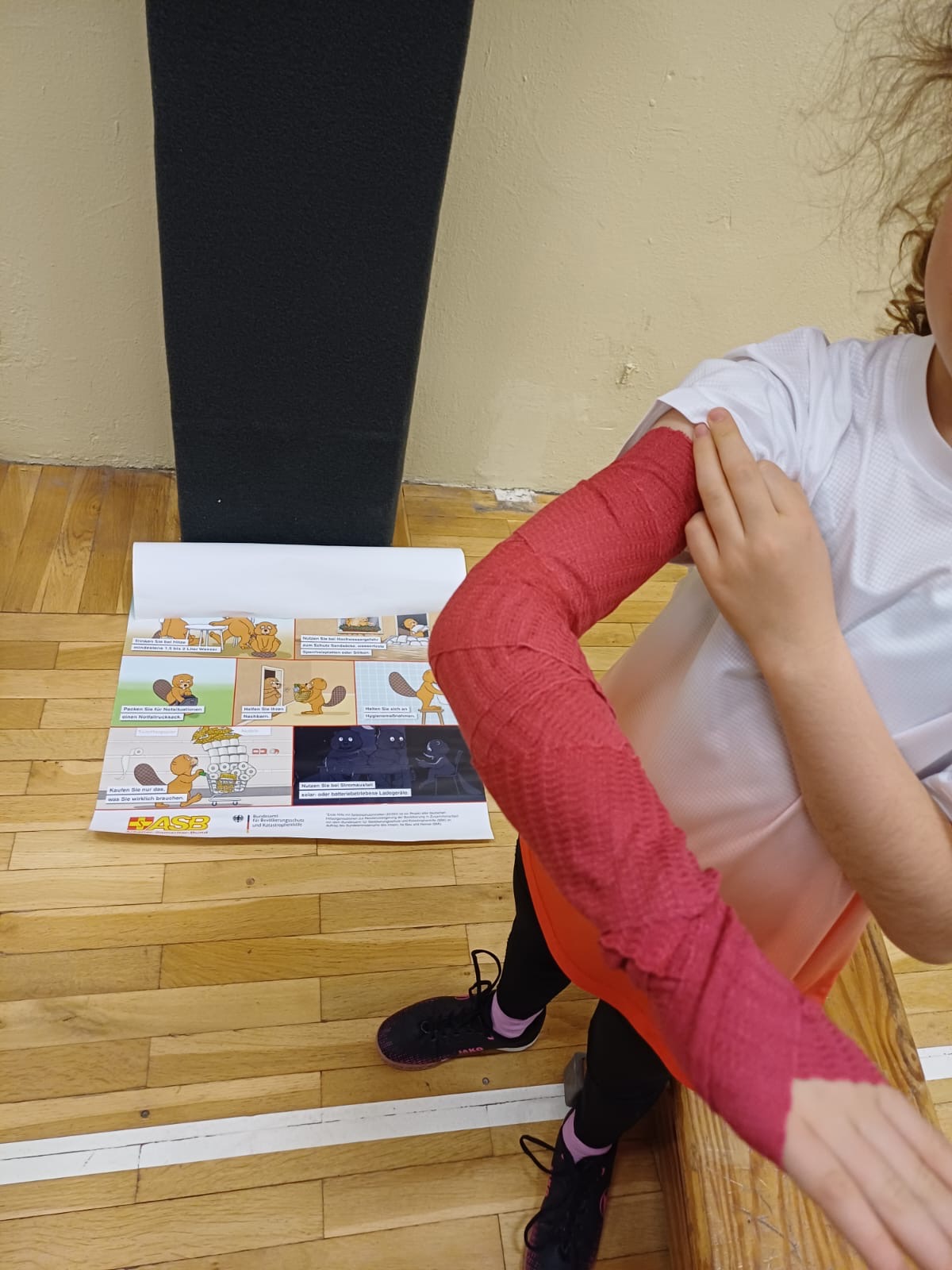 Gemeinsam wurde geübt, Situationen richtig einzuschätzen, die stabile Seitenlage umzusetzen und kleine Wunden sachgemäß zu versorgen. Alles wurde kindgerecht erklärt und anschließend praktisch ausprobiert.