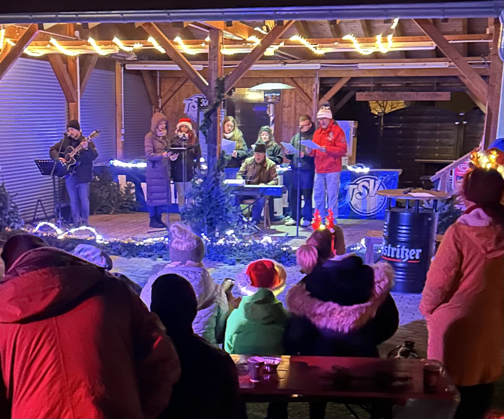 Bei Glühwein, Kinderpunsch Plätzchen und Gegrilltem war das „halbe“ Dorf unterwegs und folgte wie schon im letzten Jahr der Einladung des Gastgebers TSV Gera-Westvororte. Eintritt frei. Versteht sich! Und schon der Weg zum LVM Sportpark war ein Erlebnis für jung und alt, war doch der Lindenhof wieder außergewöhnlich weihnachtlich geschmückt und beleuchtet.