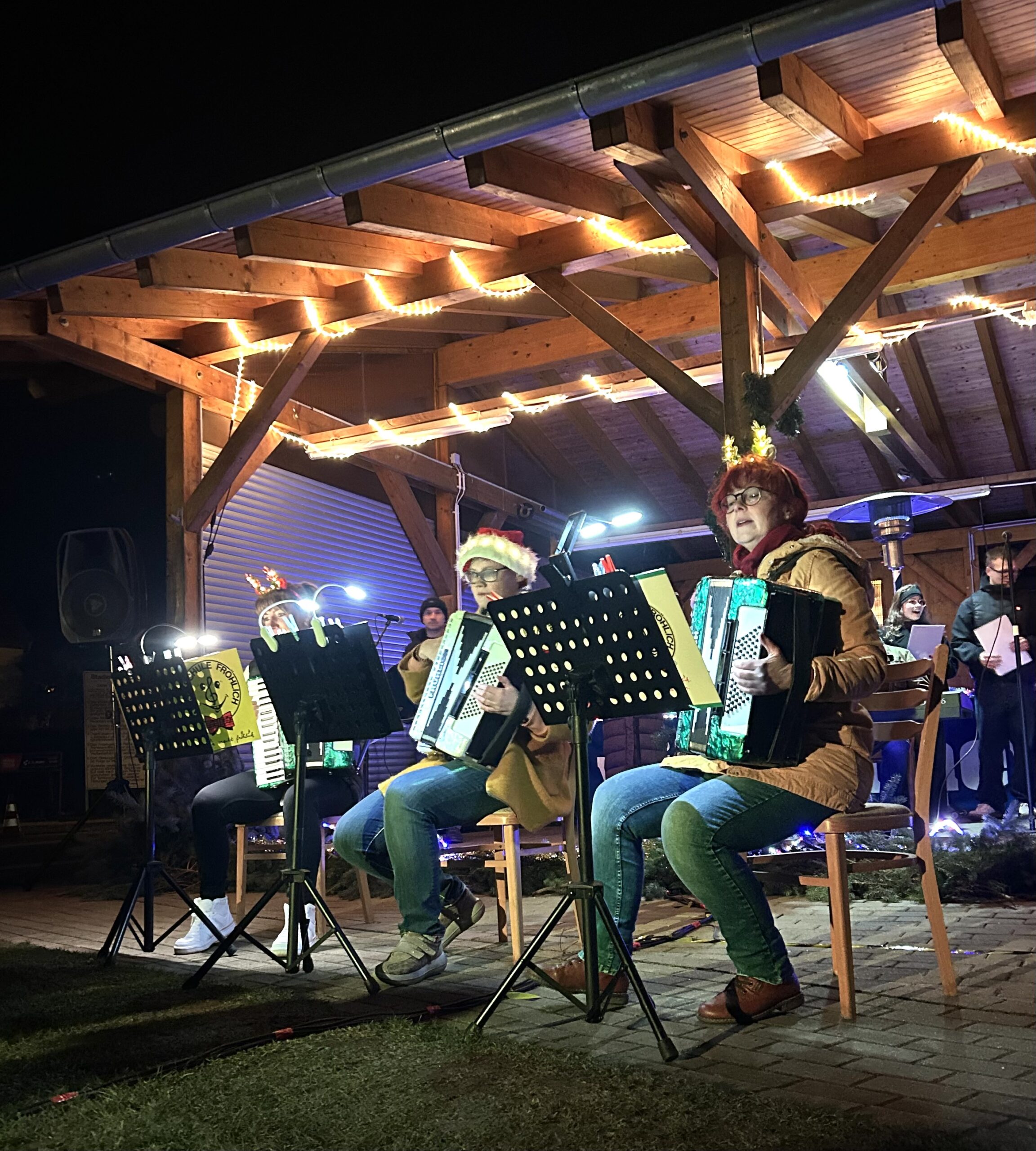 Neben dem Chor weihte Pfarrer Dr. Hiddemann von der Kirchgemeinde Frankenthal die Veranstaltung mit christlichen Worten. Unter großem Applaus präsentierten auch viele Kinder Gedichte. „Jule and Friends“ heizen die weihnachtliche Stimmung mit ihren Akkordeons an.