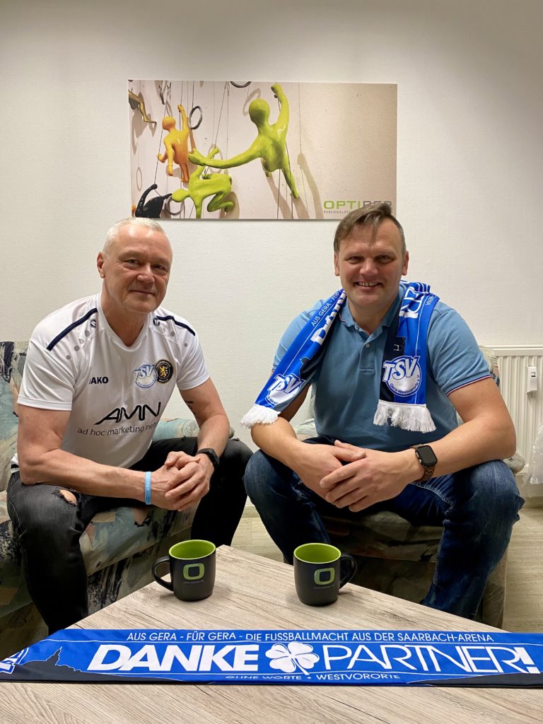 Deswegen möchte sich unser Verein bei Enrico Biesel und seinen Mitstreitern recht herzlich bedanken, dass wir mit der Firma Optiper, die in Deutschland mit ihren mehr als zehn Filialen Arbeitsuchende und Arbeitgeber betreut, sie zusammenführt und somit für Bewegung auf dem Arbeitsmarkt sorgt, einen verlässlichen Partner an unserer Seite wissen und somit auf einen langfristig angelegten Kontrakt „anstoßen“ dürfen.
